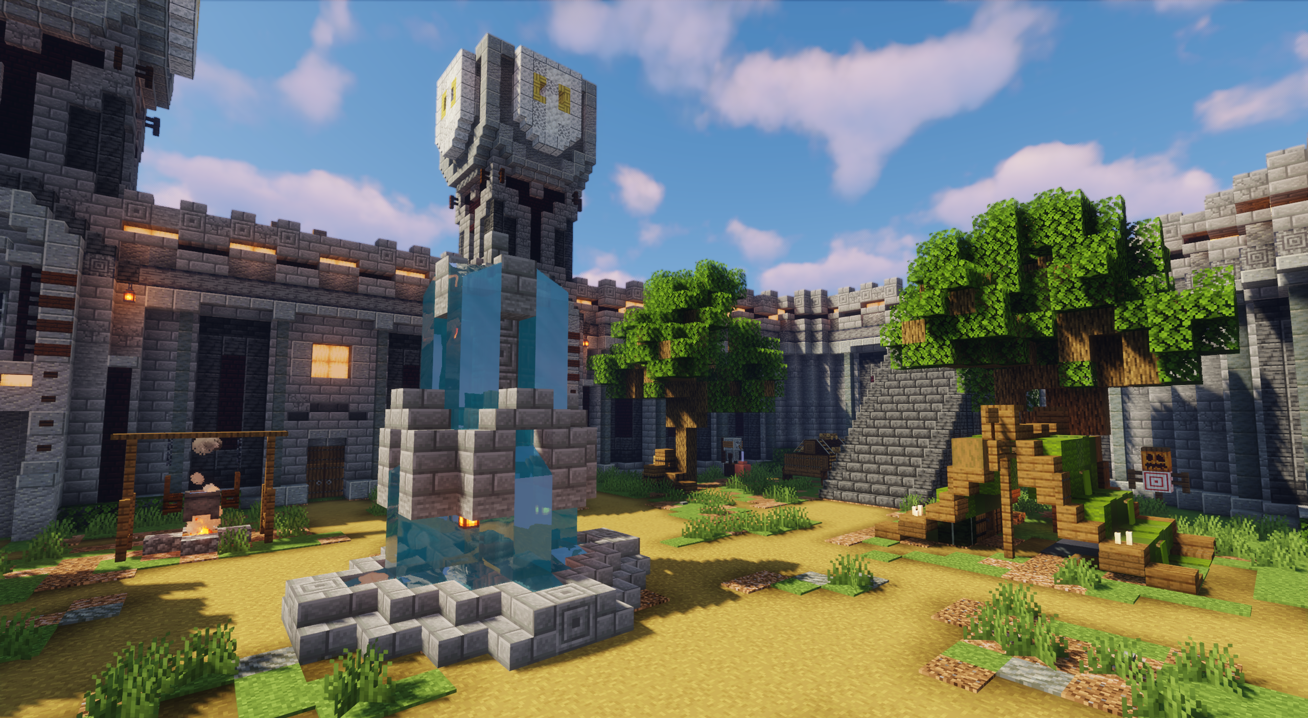 Dwarf Fortress поражает своей мощью и суровой красотой. Построенная у подножия заснеженных гор, она словно вырезана из камня самой природой. Толстые стены, сторожевые башни и массивные ворота внушают уважение. Внутри крепости кипит жизнь — кузницы гремят молотами, факелы освещают каменные своды, а лестницы уводят вглубь горы. Каждый зал и каждая колонна дышат духом ремесла и силы.