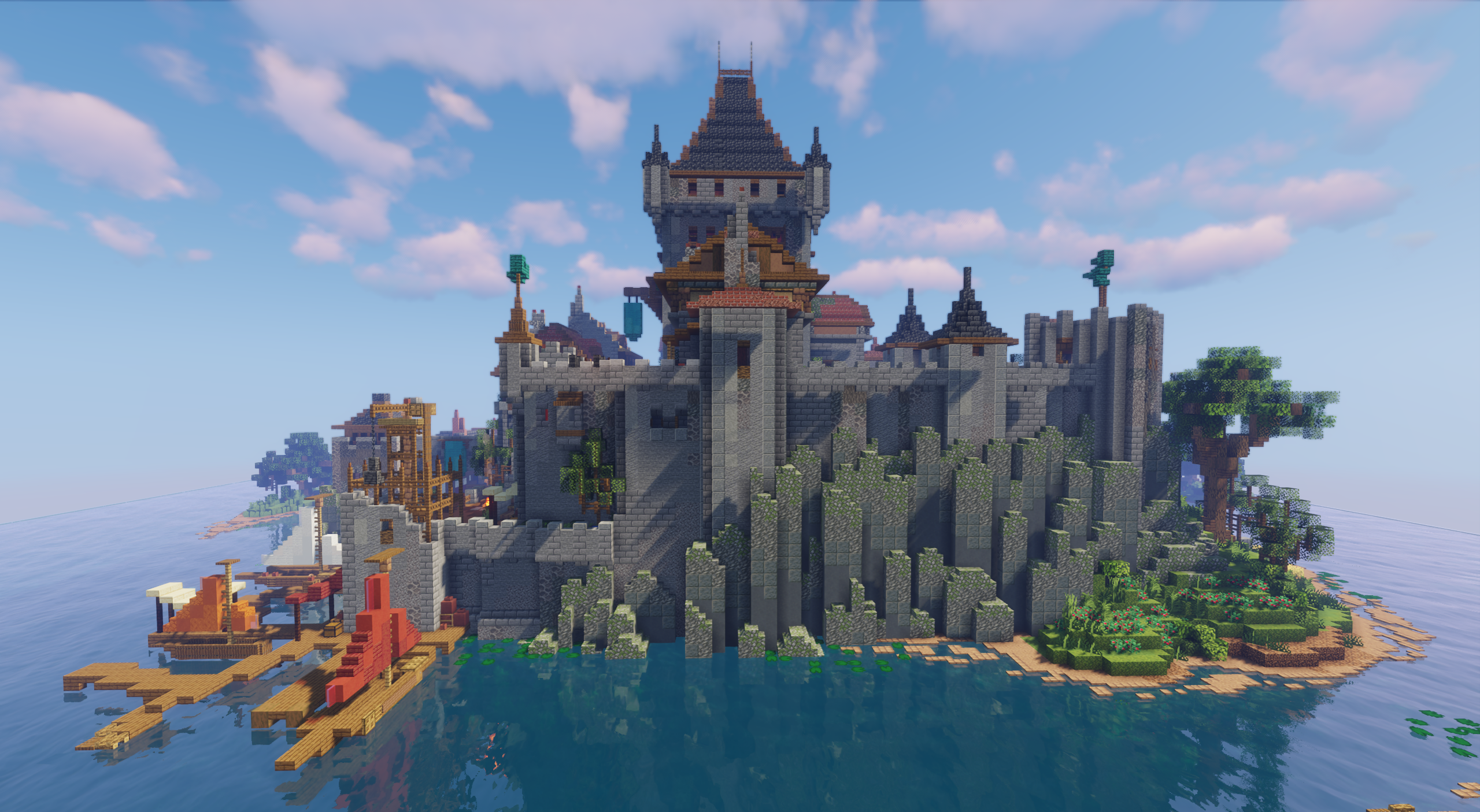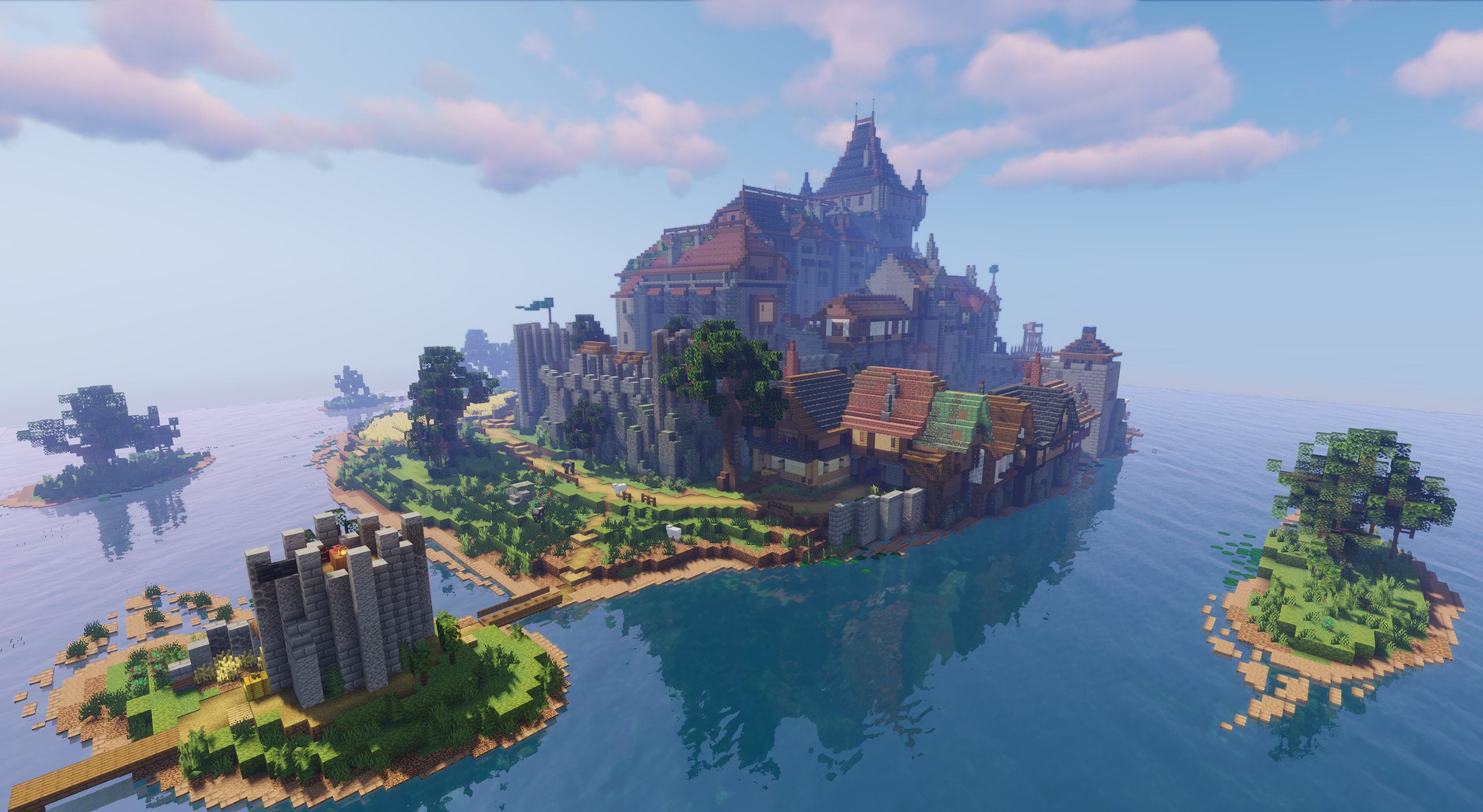 Внизу, у тихого пирса, лодки покачиваются на спокойной воде, добавляя картине живости. Эта карта идеально подойдёт для неспешного исследования, ролевых игр и создания собственных историй.