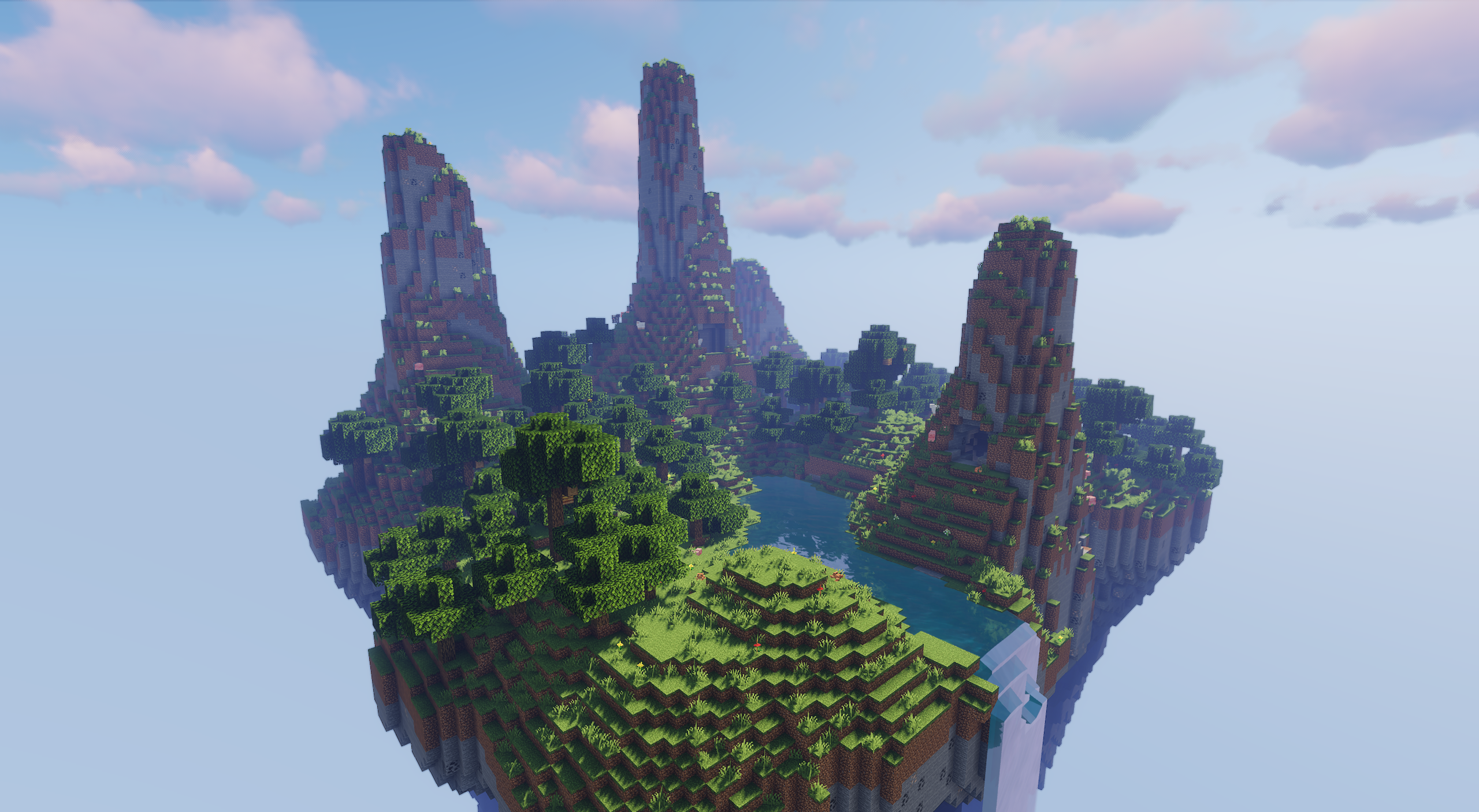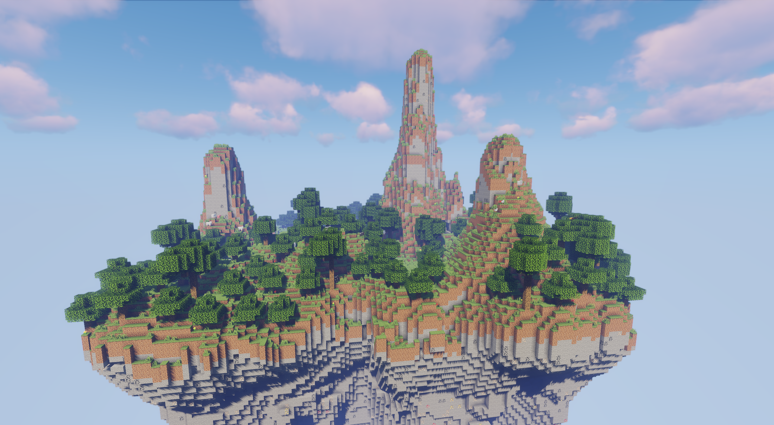 Разнообразие деревьев и мирных существ делает старт комфортным, а вертикальный ландшафт открывает простор для необычных построек. Карта подходит для совместного выживания, длительных миров и творчества, где игроки сами формируют направление развития своего небесного мира.