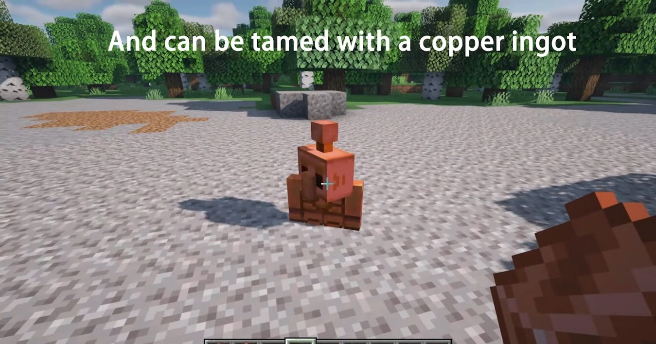 Модификация ощущается живым — он двигается, поворачивает голову, взаимодействует с окружением и постепенно меняется со временем, как обычная медь. Его можно приручить, лечить слитками и держать рядом как маленького помощника. При этом мод даёт простор для автоматизации и необычных построек с редстоуном.