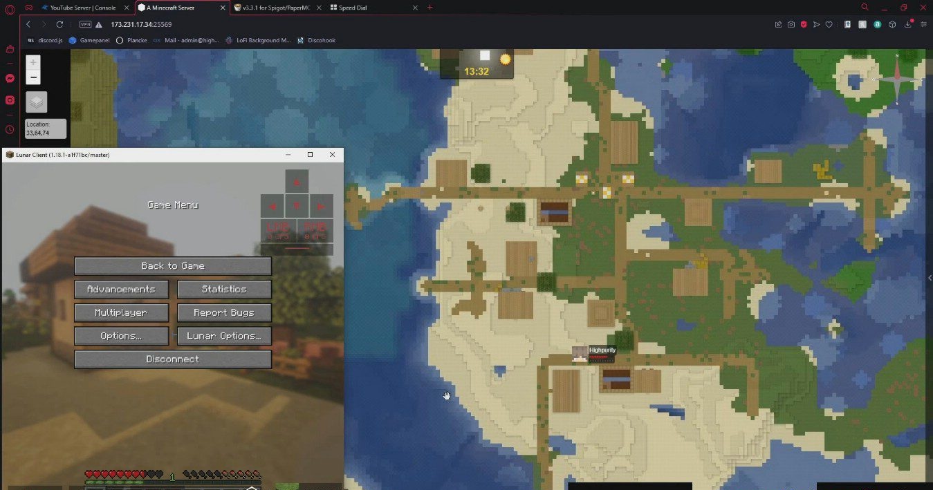 Dynmap — это мод, который особенно сильно раскрывается на серверах и в совместной игре. Он создаёт веб-карту игрового мира, которую можно открыть в браузере и просматривать почти так же удобно, как привычные онлайн-карты. Он становится не просто красивым дополнением, а настоящим инструментом навигации и контроля территории.