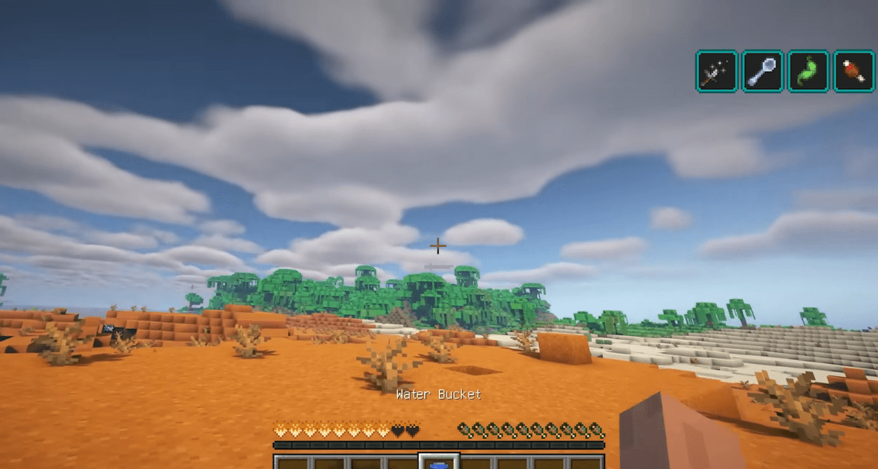 Выживание в жарких биомах обычно не сильно отличается от обычного, но Scorchful полностью пересматривает этот аспект. Пустыни, плато и Нижний мир превращаются в суровые среды, где нужно постоянно следить за температурой и уровнем воды. Игроку приходится охлаждаться, использовать воду, искать тень или специальное снаряжение. Даже песчаные бури здесь играют двойную роль — ухудшают видимость, но приносят временное облегчение от жары.