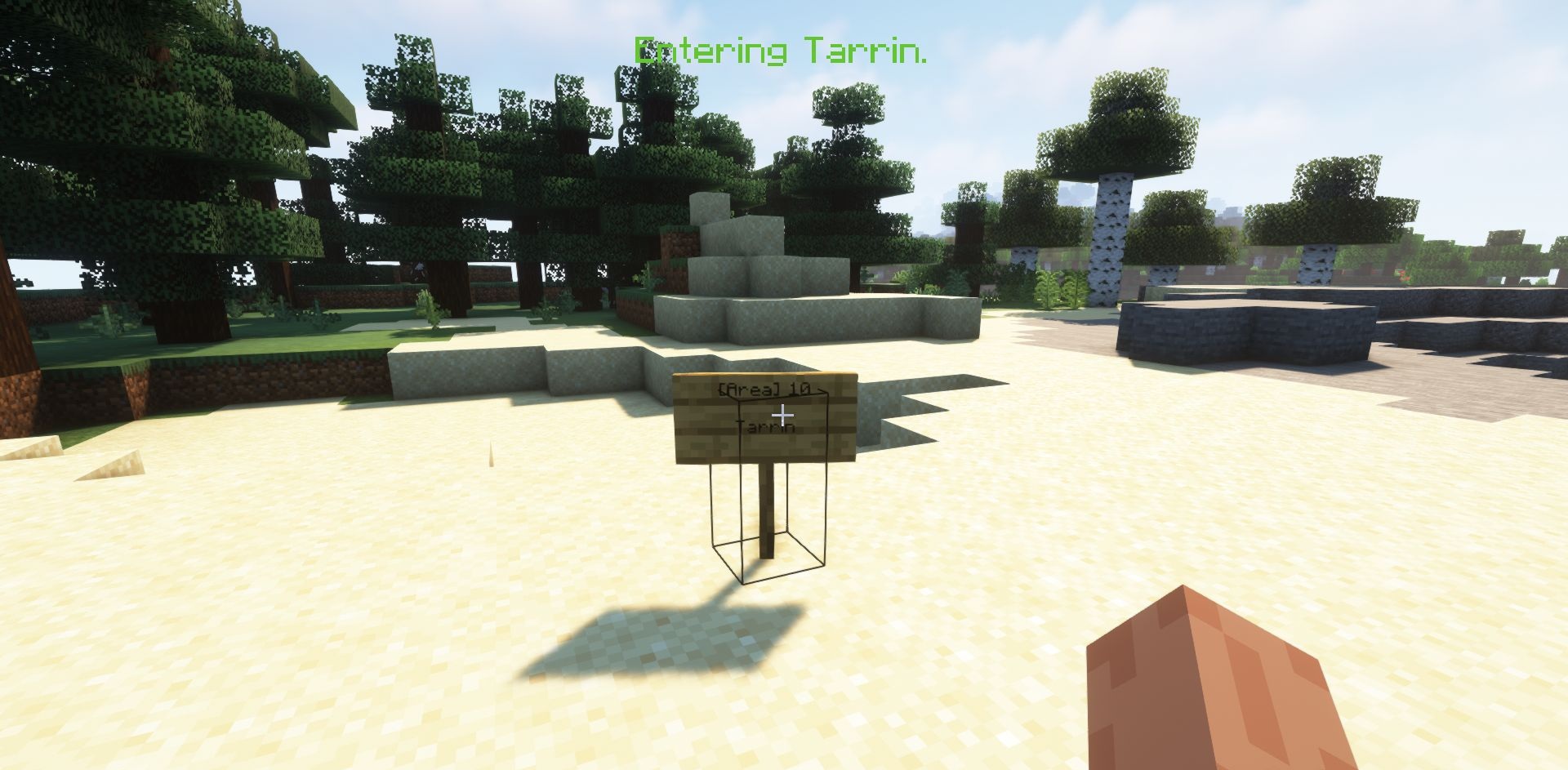 Areas — это небольшой, но полезный мод для тех, кто любит наводить порядок в мире и делать локации более выразительными. Он позволяет отмечать любые территории: от уютной деревни и личной базы до целого королевства или крупного города. Когда игрок входит в такую зону или покидает её, на экране появляется уведомление, которое можно гибко настроить: выбрать название, цвет, формат сообщения, а также добавить префиксы и суффиксы.