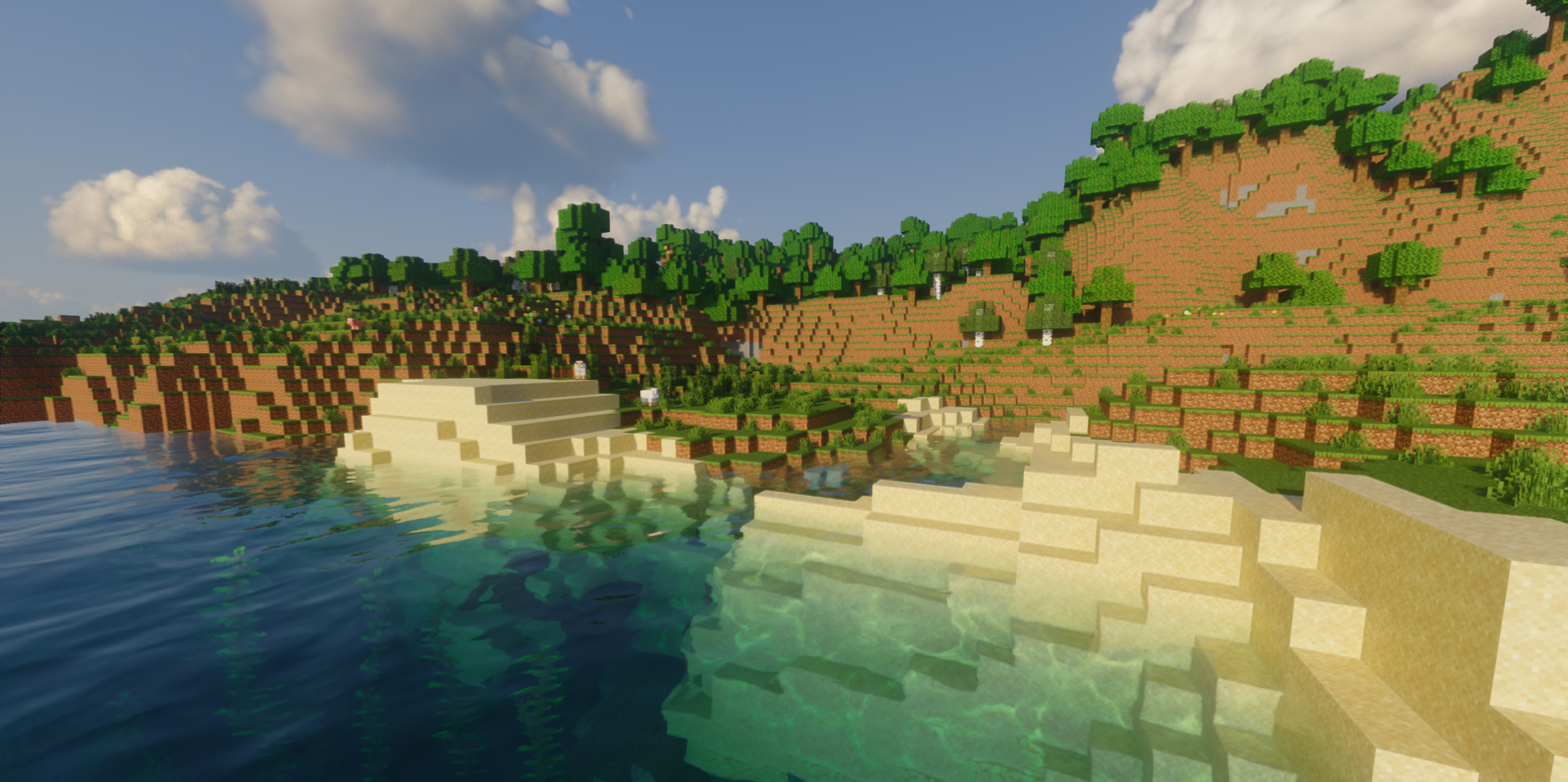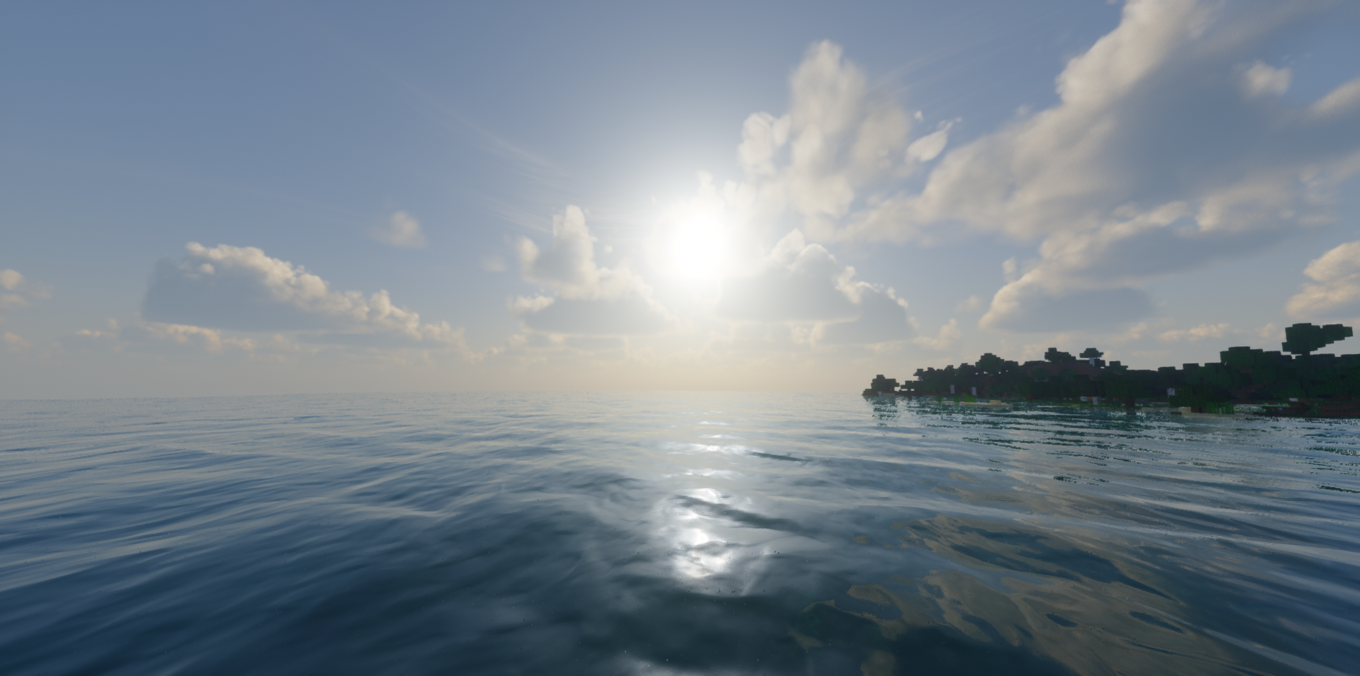 Если от шейдера хочется прежде всего технологичности, Alpha Piscium Shaders производит впечатление очень серьезного и современного решения. Он строится вокруг динамического глобального освещения, которое постоянно подстраивается под время суток и погодные условия, благодаря чему мир выглядит более объемным и естественным.