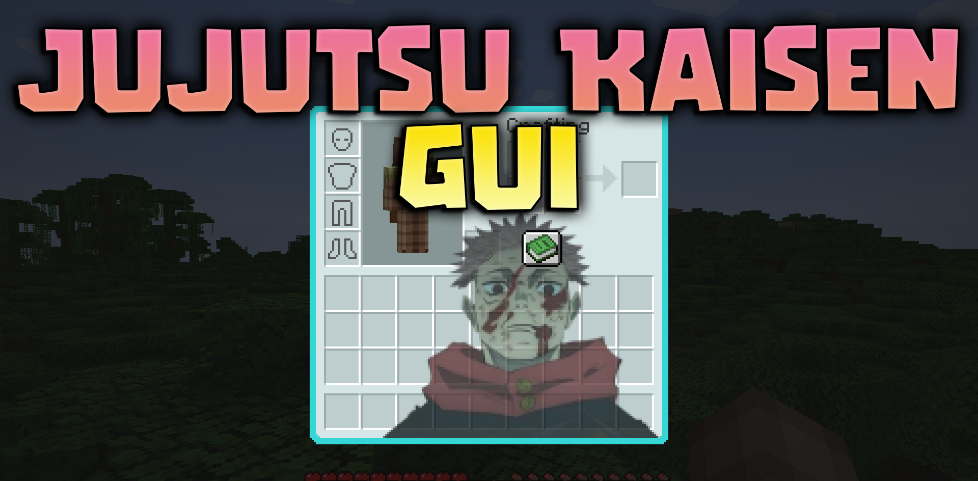 Любители аниме наверняка оценят ресурс-пак Jujutsu Kaisen GUI, ведь он полностью меняет внешний вид интерфейса Майнкрафта. Основное внимание здесь уделено графическому интерфейсу: меню, инвентарь и элементы HUD получают совершенно новый стиль, вдохновленный популярной аниме-вселенной.