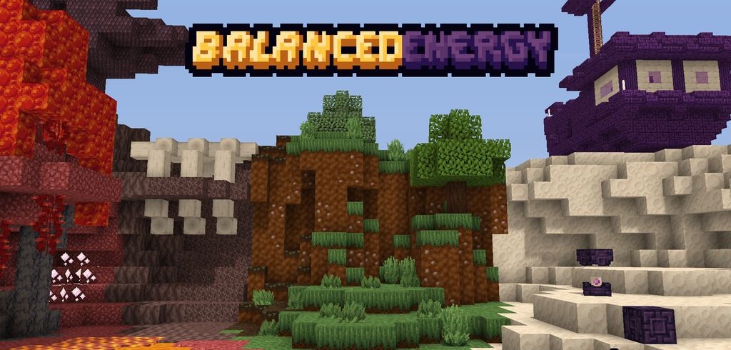 Визуальный стиль Balanced Energy строится на идее трансформации привычного мира через магическую и индустриальную энергию. Текстуры словно пропитаны светящимися линиями и необычными орнаментами, создающими ощущение скрытой силы внутри блоков. Каменные поверхности выглядят тяжелее и фактурнее, металлические элементы приобретают сложные декоративные детали.