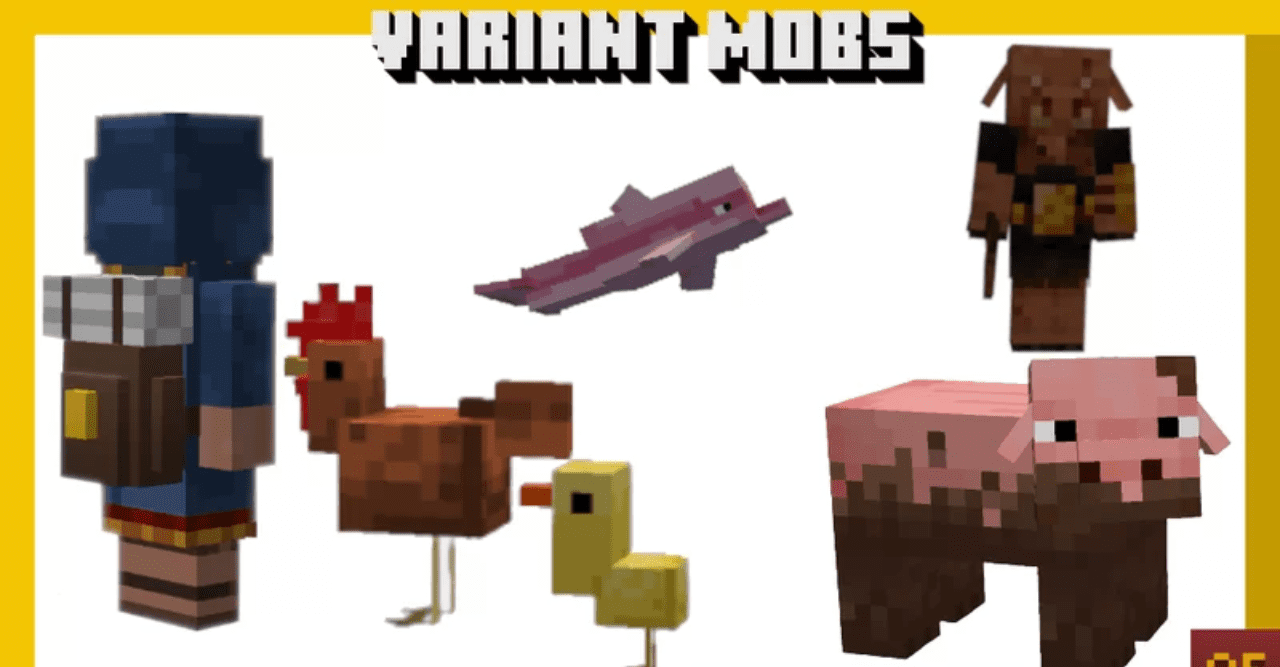 С Variant Mobs привычные встречи перестают быть предсказуемыми. Пак добавляет множество вариаций мобов — меняются оттенки кожи, рисунки, пропорции и отдельные детали моделей. Даже обычные животные начинают выглядеть как представители разных пород, а враждебные существа обретают новые пугающие черты.