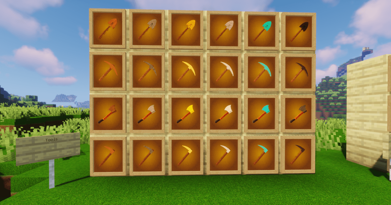 Детализация в Asgardia Remake выходит на совершенно иной уровень по сравнению со стандартной графикой. Поверхности блоков проработаны так тщательно, что камень приобретает выраженную зернистость, древесина — ощущение настоящей структуры волокон, а земля и руда выглядят глубоко текстурированными. Даже при близком рассмотрении текстуры не теряют качества и создают иллюзию объёма.