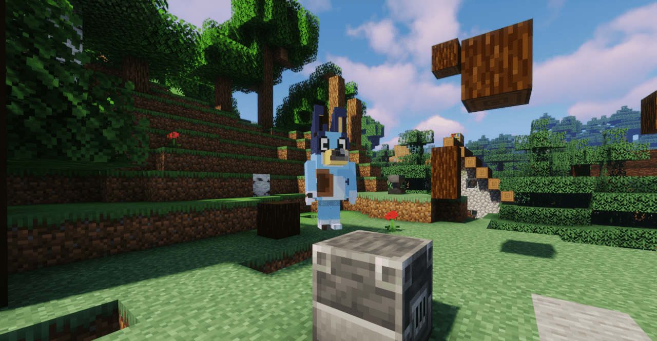 Иногда ресурспак нужен просто для настроения — именно таким является Bluey But 3D. Он заменяет стандартных жителей на трёхмерную модель Bluey, добавляя тематические звуки при получении урона и гибели. Благодаря этому любое взаимодействие с деревней приобретает необычный и немного юмористический оттенок. В комплекте присутствует уникальное яйцо призыва, что делает появление персонажа ещё более стилизованным.