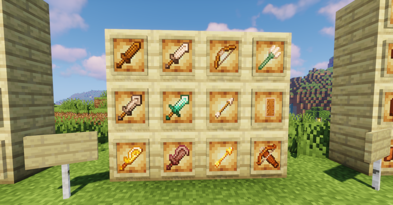 Такое визуальное обновление заметно как в инвентаре, так и в руках персонажа, добавляя глубину даже самым привычным предметам. Пак создаёт ощущение «улучшенной классики», где стандартный визуал Майнкрафта сохраняется, но становится чуть более насыщенным и детализированным.